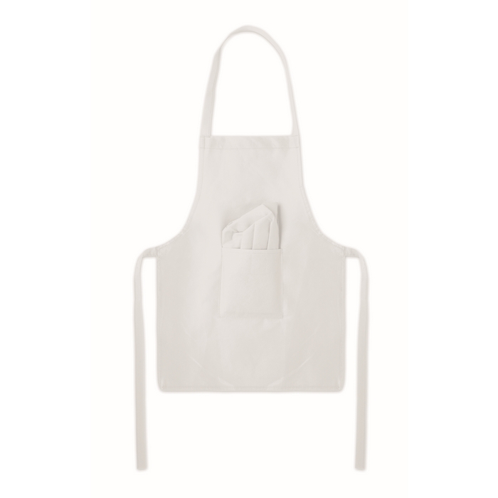 Dětská kuchařská čepice a zástěra z netkané textilie RPET 80 g/m2. Rozměry: 42.5 x 57 cm
