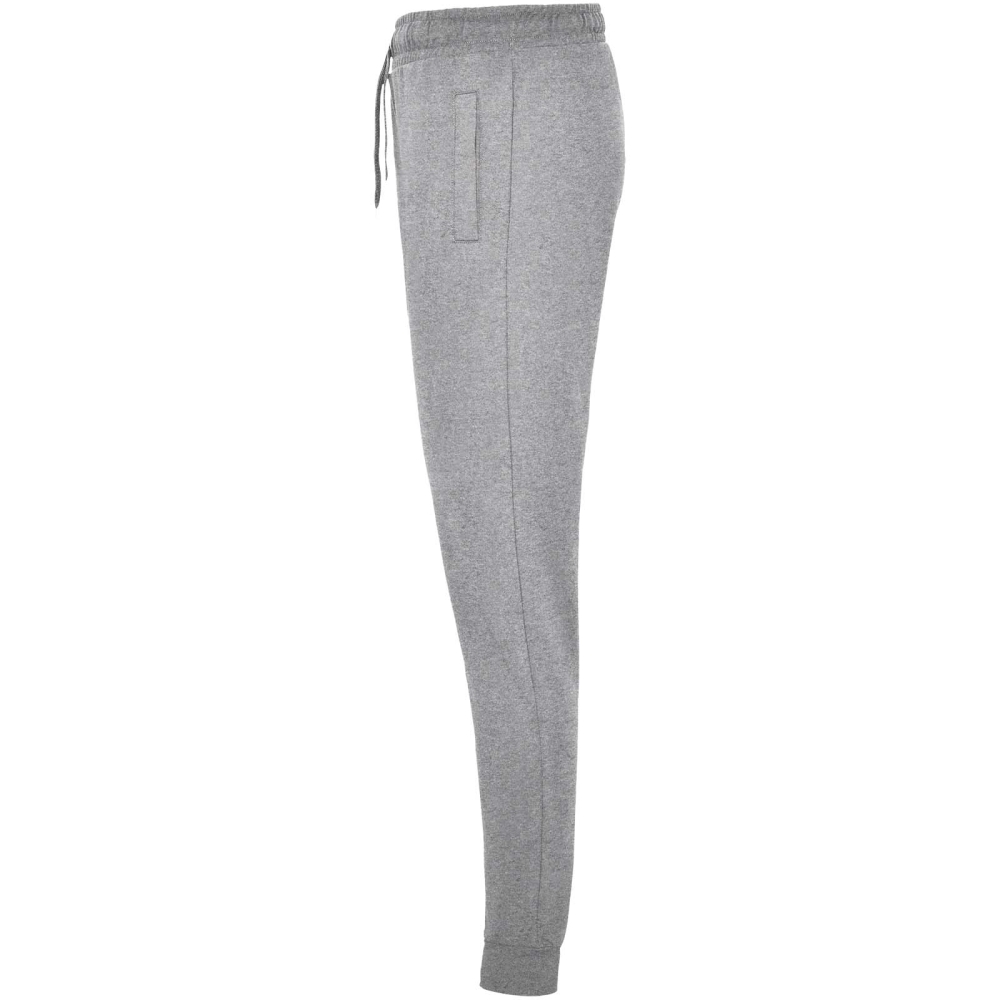 Sportovní kalhoty se širokým nastavitelným pasem, stahovací šňůrkou, přiléhavými kotníkovými manžetami, zesílenými švy, žebrovanými bočními kapsami a zadní rohovou kapsou s prošitým průhledem. Odnímatelný štítek.