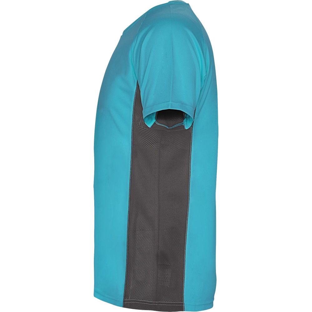 Technická a prodyšná látka. Kombinace dvou polyesterových látek: Hlavní látka „ptačí oko“, boční panely a vnitřní rukáv z mikroperforované látky. Kulatý výstřih s vnitřními zesílenými krytými švy. Odnímatelný štítek. Materiál: 100% polyester