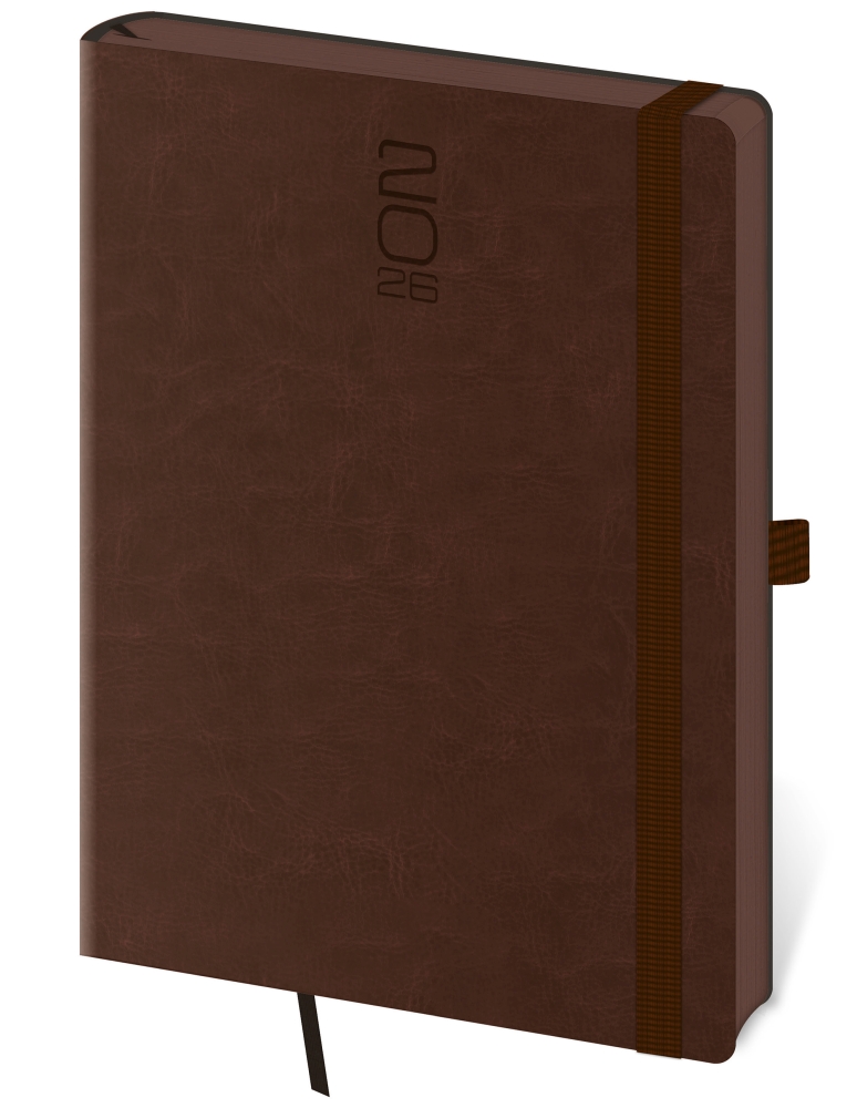 Diář denní A5 Memory s gumičkou - tmavě hnědá 2027