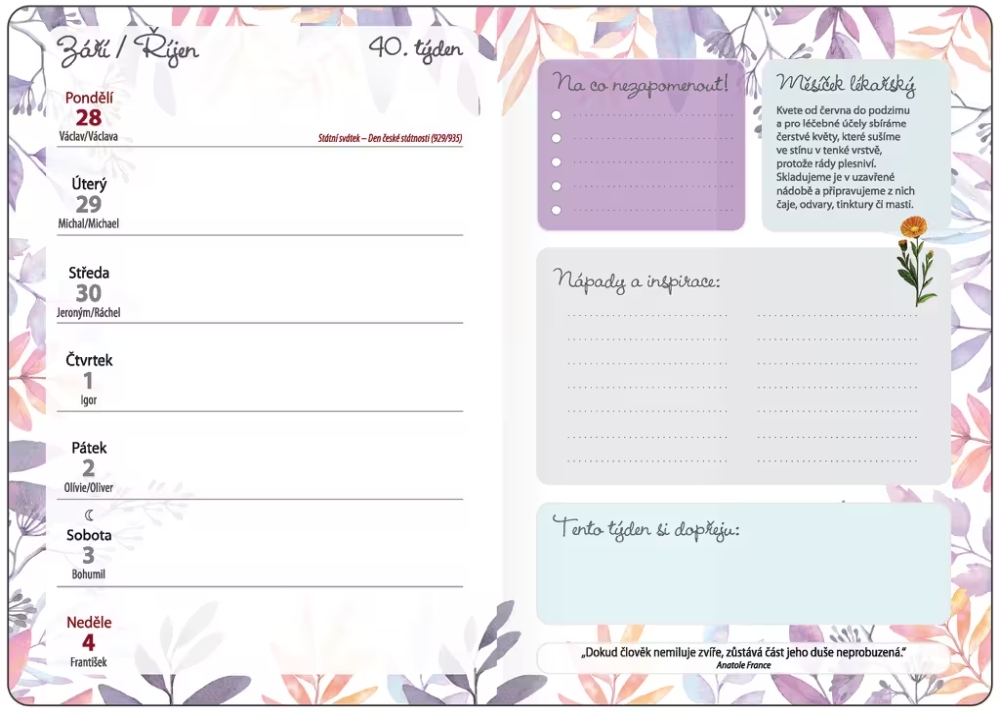 Diář týdenní B6 bylinkový Květy s gumičkou 2027