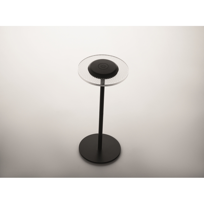 Dobíjecí kovová stolní lampa se 39 RGB světly LED a plynulým stmíváním. S možností teplého nebo barevně se měnícího světla. Vestavěná baterie s kapacitou 2000 mAh vydrží svítit až 6 hodin. Rozměry: O13 x 29.5 cm