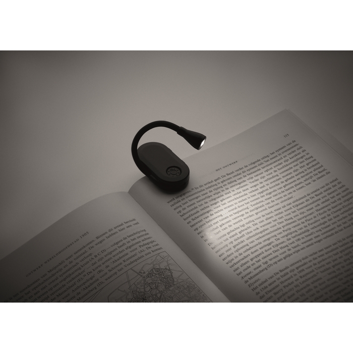 Dobíjecí LED světlo na čtení s krytem z ABS, s ohebným tělem a klipem. Má 3 nastavení světla a 300mAh baterii. Rozměry: 8.3 x 4.6 x 1.8 cm