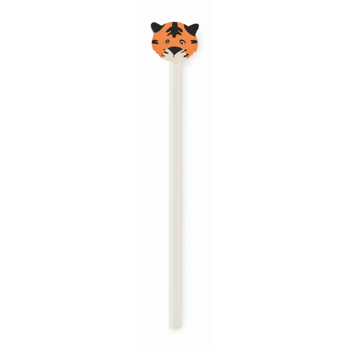 Dřevěná tužka s gumou ve tvaru zvířátka. Rozměry: 18.8 cm
