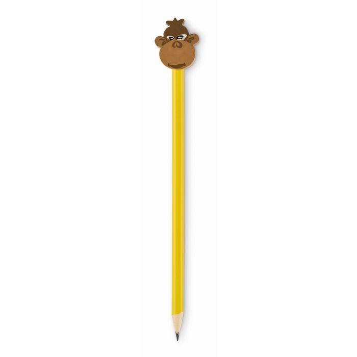 Dřevěná tužka s gumou ve tvaru zvířátka. Rozměry: 18.8 cm