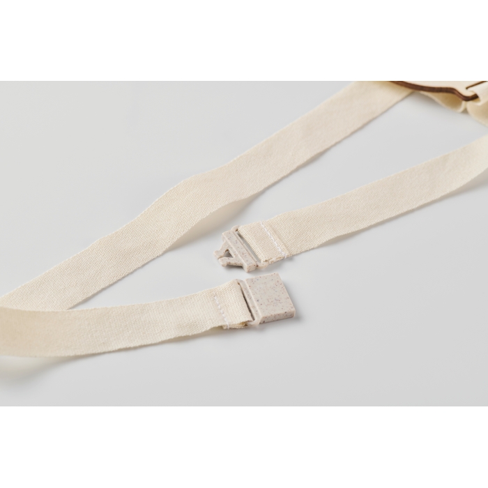 Dřevěná medaile s bavlněnou šňůrkou a bezpečnostní sponou z pšeničné slámy a PP. Rozměry: DIA7 x 0.4 cm