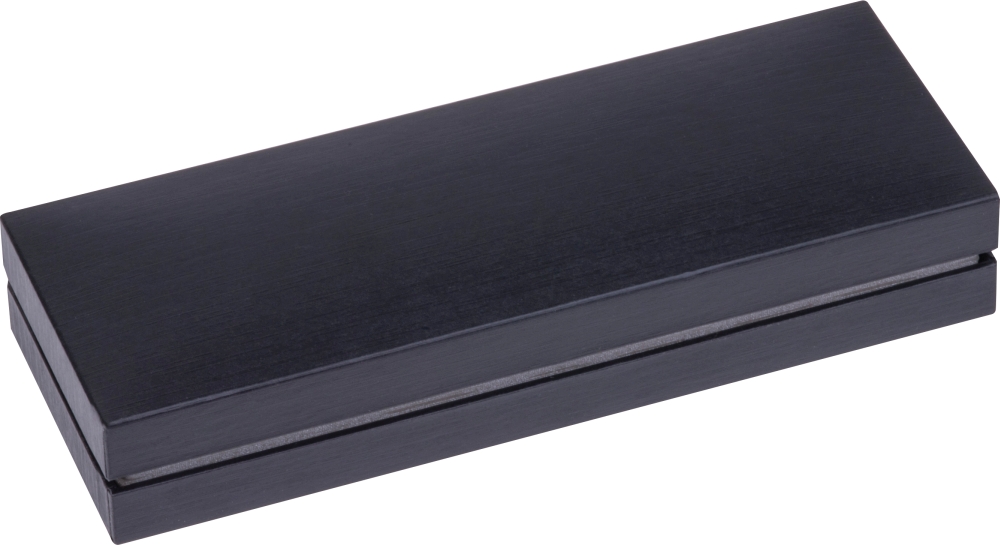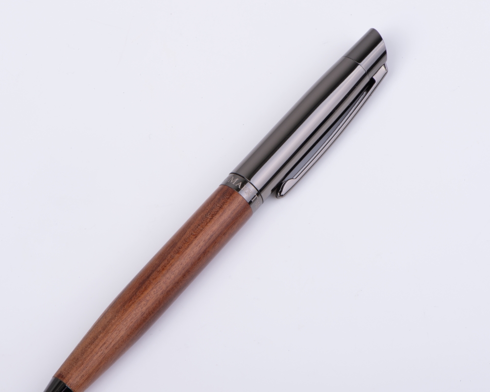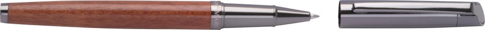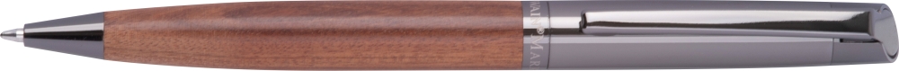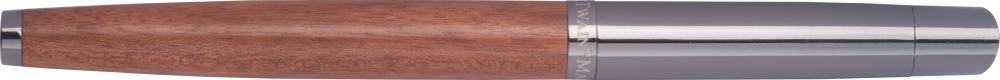 Písací sada Mark Twain vyrobená z nerezové oceli a dřeva. Kuličkové pero a roller s modrým inkoustem. Rozměry: 17,2 x 6,4 x 3 cm