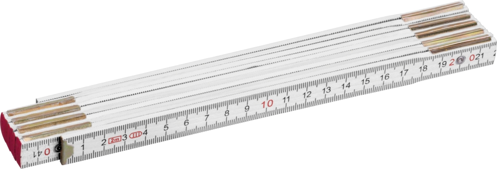 Dřevené skladací pravítko s integrovaným úhloměrem, centimetrová stupnice, 23,7 cm ve složeném stavu, celková délka 2 m. Odolné, přesné a ideální na řemesla, dílny nebo domáce použití. Rozměry: 23,7 x 3,4 x 1,6 cm