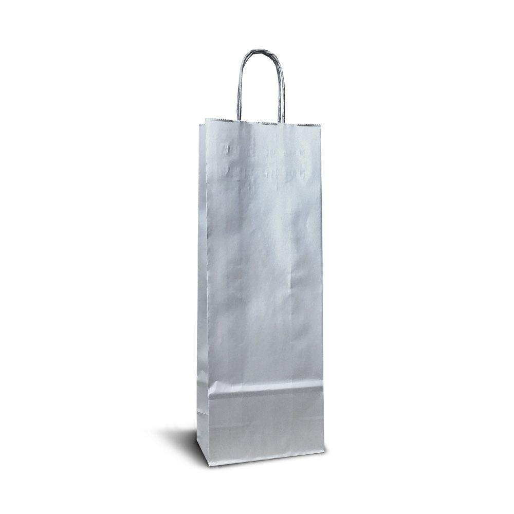 DUNEO Papírová taška na víno 14 x 8 x 40 cm, stříbrná