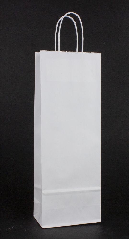 Taška na víno vyrobená ze sulfátového papíru 120 g. Kroucená držadla. Rozměry: 15 × 8 × 40 cm.