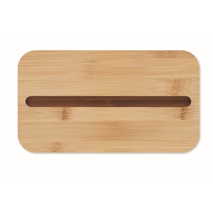 Dvoupatrový box na svačinu z PP s odnímatelnou přepážkou a 3 příbory. Zavírání pomocí pásky. Bambusové víko slouží i jako stojánek na telefon. Objem: 400 ml (2x). Bambus je přírodní materiál, může dojít k mírným změnám barvy, dekorace a velikosti. Neteče. Rozměry: 18 x 10 x 9,5 cm