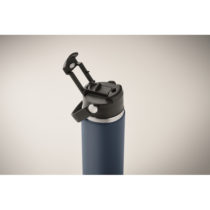 Dvoustěnná termoláhev z recyklované nerezové oceli (90 % recyklované nerezové oceli a 10 % nerezové oceli) s kombinovaným víčkem, brčkem a rukojetí. Neteče. Objem: 500 ml. Rozměry: O7.4 x 22 cm