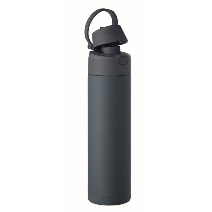 Dvojstěnná láhev z recyklované nerezové oceli (90 % recyklované nerezové oceli a 10 % nerezové oceli). S víčkem z PP 2v1 a rukojetí. Objem: 500 ml. Rozměry: O7.4 x 26.6 cm