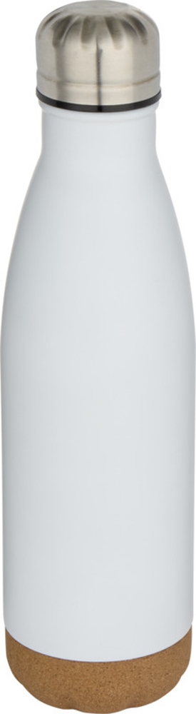 Dvoustěnná vakuově izolovaná nerezová láhev na vodu s korkovými detaily 500ml , bílá