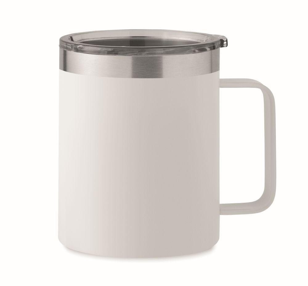Dvoustěnný termohrnek 300ml z recyklovaného nerezu s plastovým víčkem, bílý