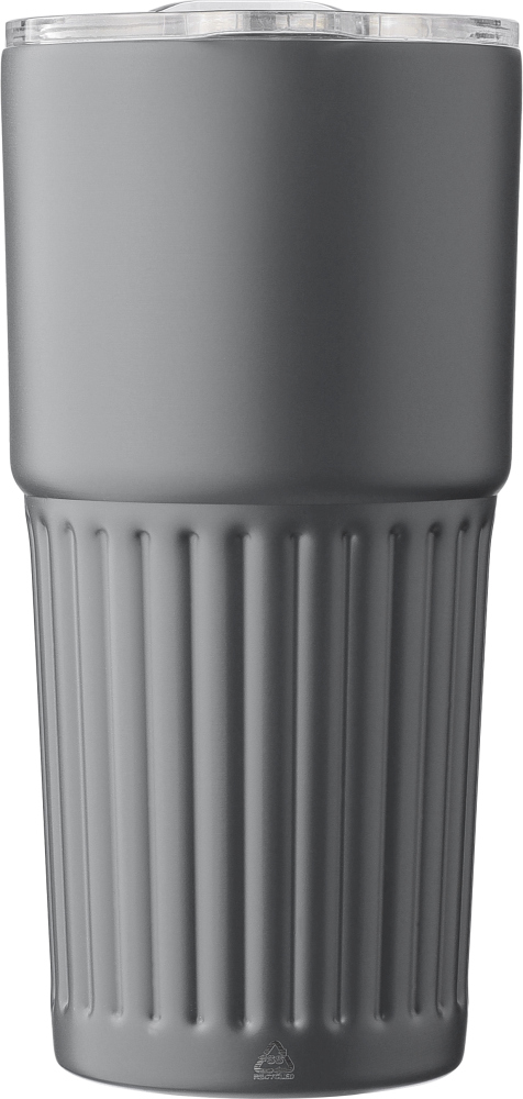 Dvoustěnný hrnek z recyklované nerezové oceli (500 ml). Víko AS s posuvným uzávěrem. Na těle je vyryté recyklované logo. Jednotlivě baleno v hnědé kartonové krabici. Rozměry: 8,7 x 18,2 cm