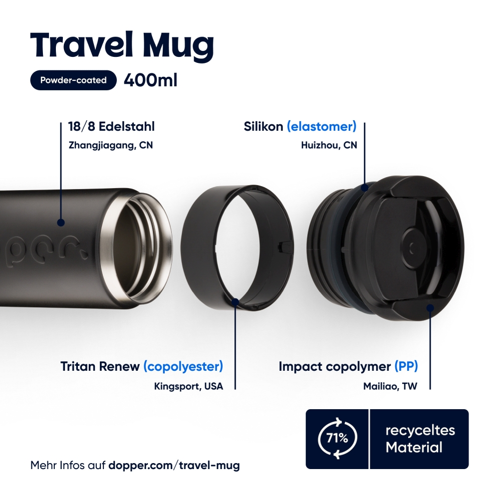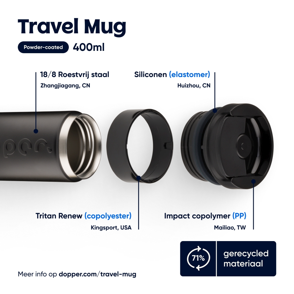 Ranní kofeinování, polední hydratace nebo večerní zážitek z perlení. Tento cestovní hrnek Dopper je připraven na cokoli a je připravený vzít si kamkoli. Udrží horké nápoje horké, studené nápoje chladné a perlivé nápoje perlivé. Žádné úniky. Žádné starosti. Žádná další hmotnost. A rozhodně žádný odpad na jedno použití. Má snadno otevíratelný odklápěcí uzávěr, udrží nápoje horké až 6 hodin a studené až 20 hodin. Vyrobeno z dvoustěnné nerezové oceli s 90% recyklovaným obsahem, s odolným práškovým lakem. Vhodné do myčky nádobí (bez potisku) do 65 °C. Po použití čaje nebo kávy se mohou objevit skvrny nebo zápach. Buďte opatrní s horkými tekutinami. Rozměry: 7 x 18 cm