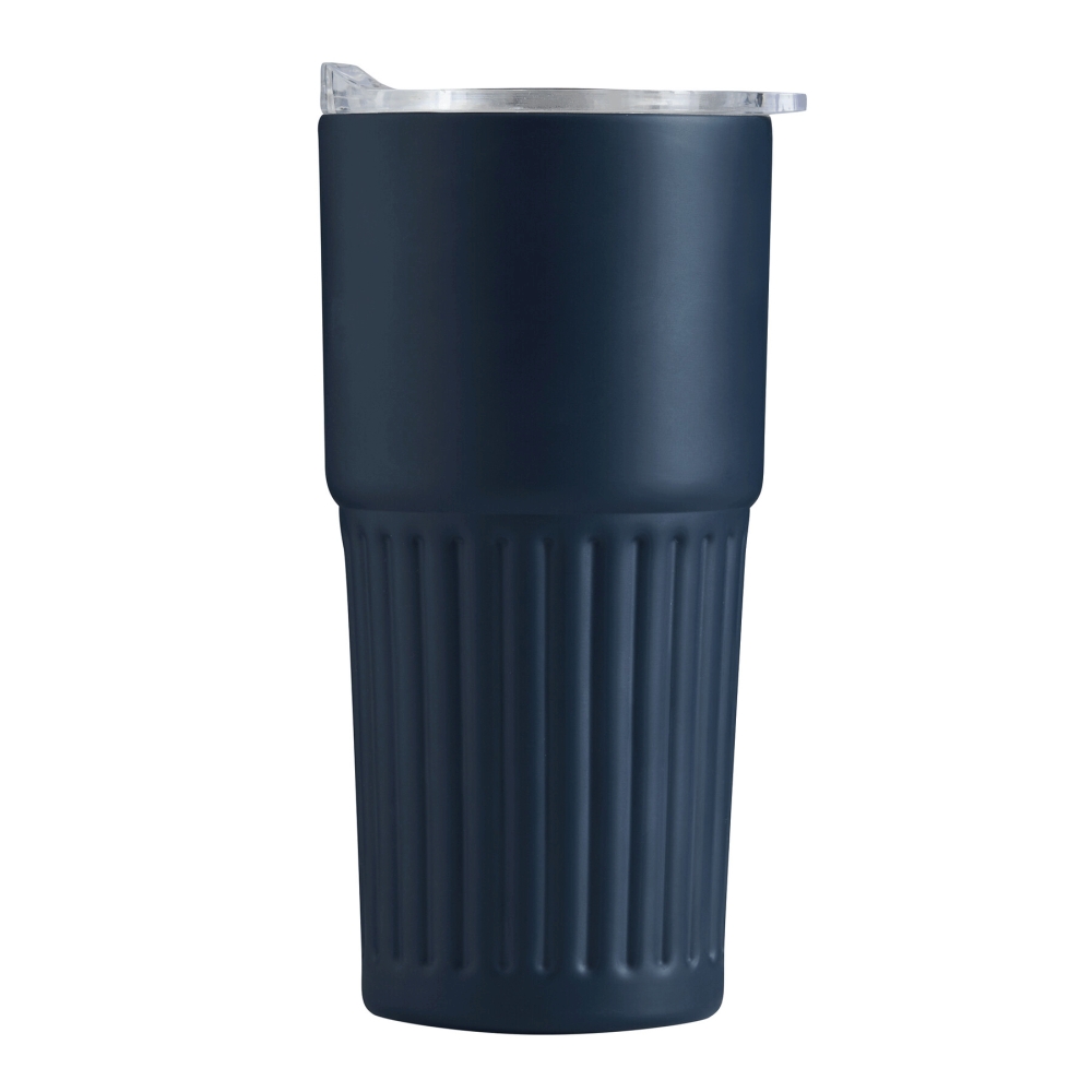 Dvoustěnný vakuový hrnek na pití, vnitřek z recyklované nerezové oceli, vnější strana z nerezové oceli, plastové víko se silikonovým těsněním a integrovaným posuvným otvorem na pití, objem cca 600 ml, udrží teplé nápoje cca 4 hodiny a studené až 8 hodin, baleno v krabičce. Rozměry: O8,7 x 18 cm