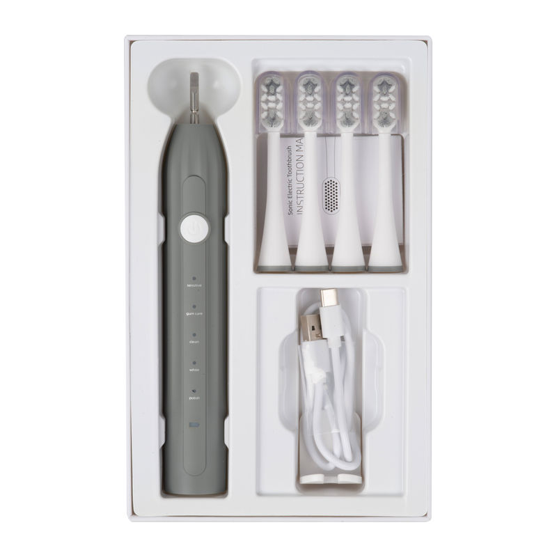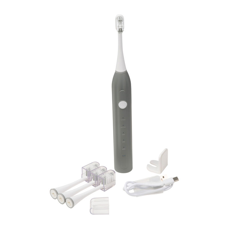 Elektrický zubní kartáček (200 mAh) se 4 náhradními hlavicemi, USB-C připojením a nabíjecím kabelem. Ideální na cesty. Rozměry: 21,5 x 13,9 x 3,8 cm