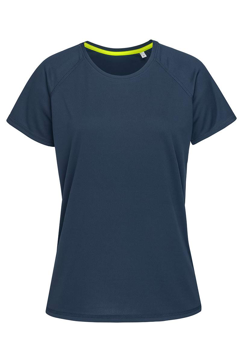 Dámské sportovní tričko s bočními švy, raglánové rukávy s dekorativními plochými švy, kontrastní páska v barvě reflexní žlutá na vnitřní straně výstřihu. Materiál: 100% Active-Dry polyester síťovina, 140 gsm. Doporučená technologie tisku: sítotisk S3, S4, výšivka.