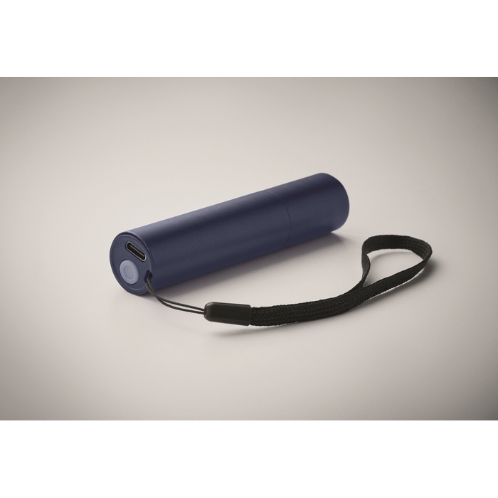 Hliníková dobíjecí svítilna. 110 lumenů, 3 režimy světla a zoom. Vestavěná dobíjecí baterie 400 mAh a nabíjecí kabel jsou součástí dodávky. Rozměry: 2,3 x 10 cm