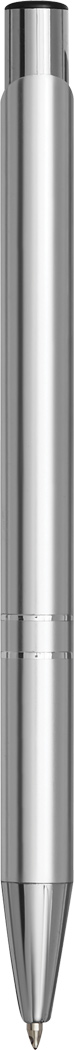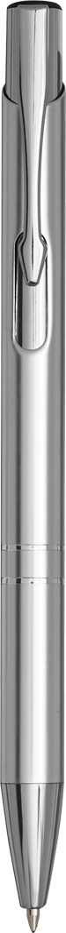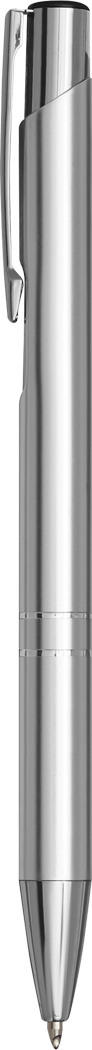 Hliníkové kuličkové pero má lesklé kovové tělo a klip, velkokapacitní náplň s modrým inkoustem, tlačítkový mechanismus. Rozměr: 13,7 cm