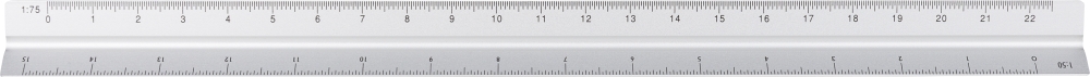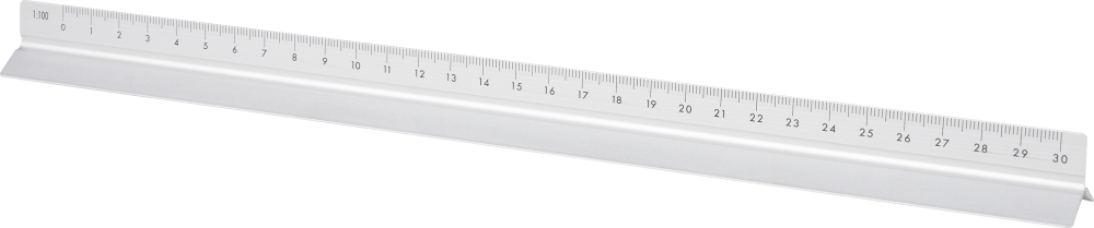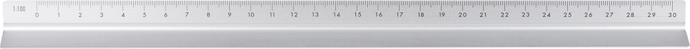 Hliníkové pravítko trojúhelníkového tvaru o délce 30 cm s několika měřítkovými stupnicemi: 1:20, 1:25, 1:50, 1:75 a 1:100. Jedna strana bez stupnice pro gravírování. Obsahuje centimetrové i palcové značky. Jednotlivě baleno v hnědé kartonové krabici. Rozměry: 2 cm x 32 cm