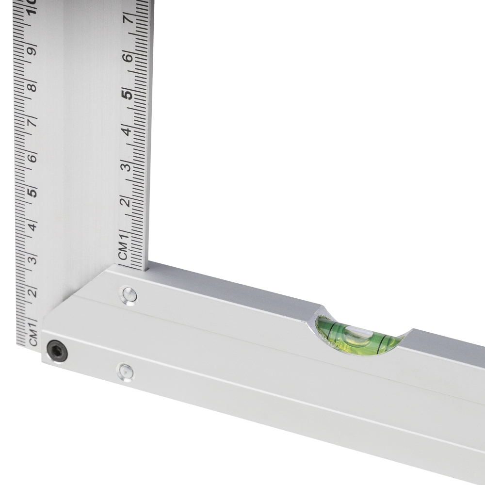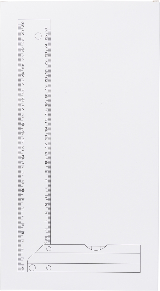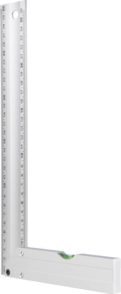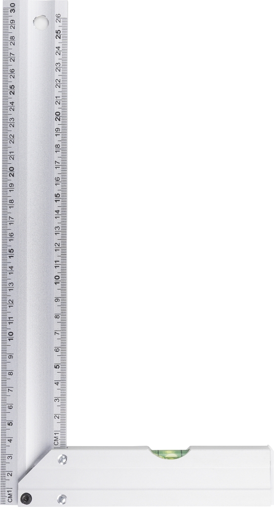 Hliníkový úhelník s integrovanou vodováhou. Délka 30 cm s jasným ukazatelem v centimetrech. Praktické provedení pro přesné měření a nivelaci. Baleno jednotlivě v hnědé kartonové krabici s ilustrací. Rozměry: 3,4 cm x 30,6 cm