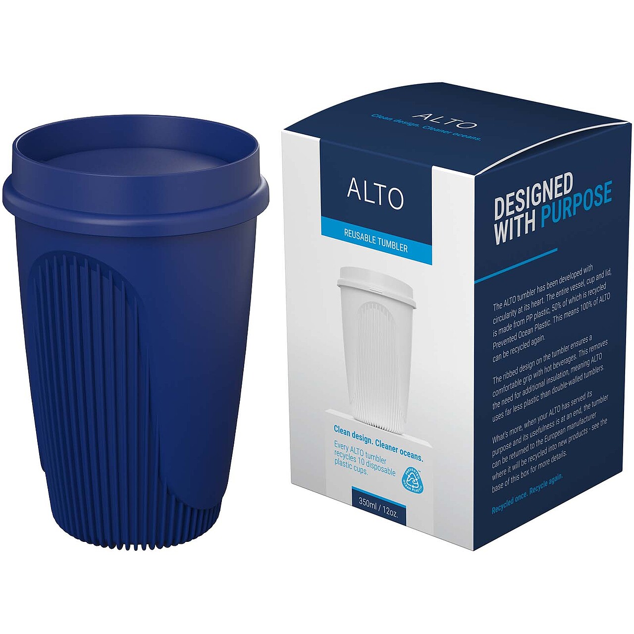 Hrnek o objemu 350 ml obsahuje 50 % plastu Prevented Ocean Plastic – každý hrnek recykluje a znovu využije 10 jednorázových plastových kelímků sesbíraných v Asii. Hrnek Alto je sofistikovaná a stylová jednostěnná nádoba na pití s izolačním žebrováním pro bezpečnou a pohodlnou manipulaci. Má elegantní nacvakávací víčko s nenápadným reliéfem, díky kterému snadno najdete otvor pro pití. Víčko i hrnek jsou vyrobeny z kompletně recyklovatelného plastu. Vychutnejte si své oblíbené horké nápoje pohodlně i stylově. Rozměry: 13,2 x 86 cm