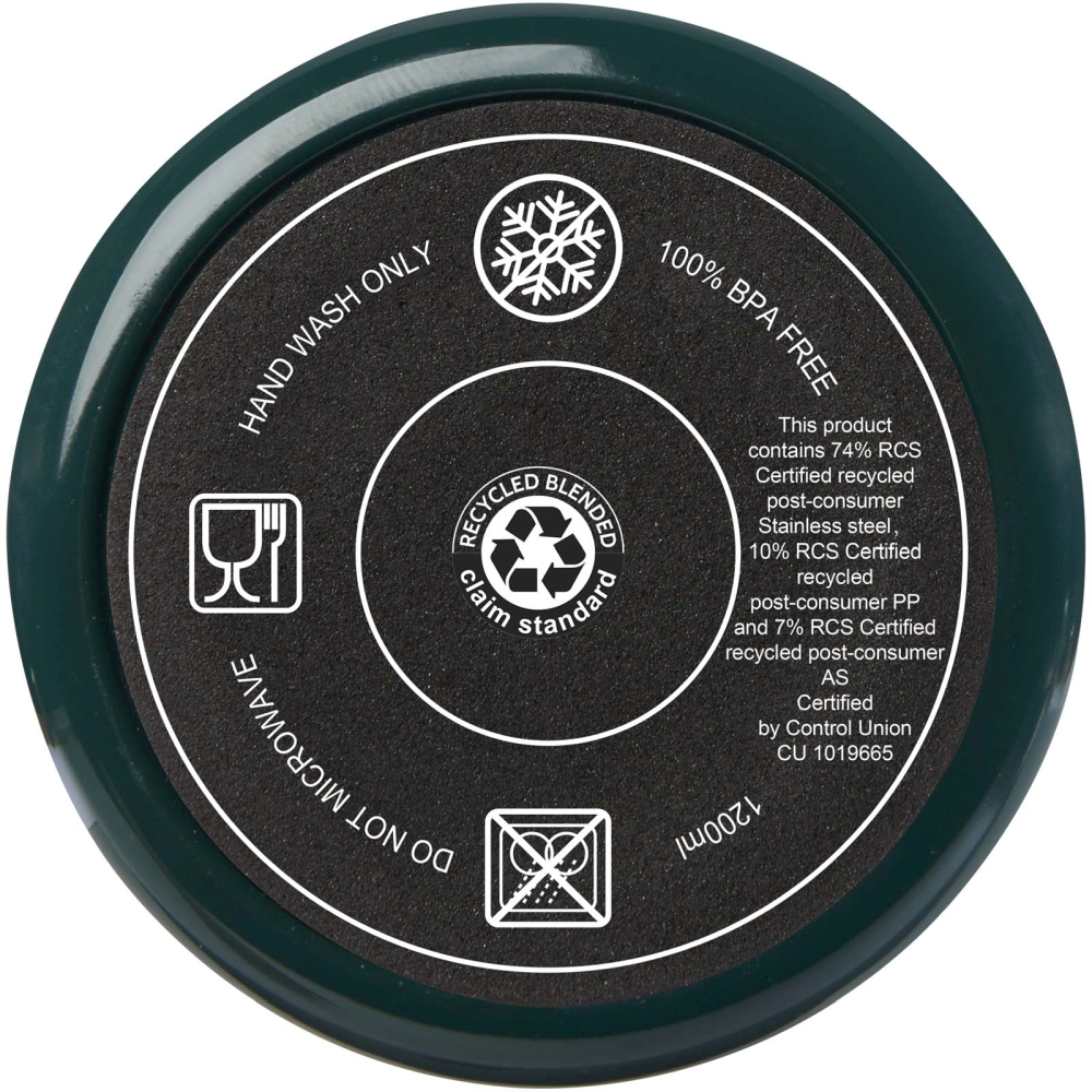 Hrnek se vyznačuje odolnou konstrukcí s dvojitou stěnou, která udržuje nápoje horké nebo studené v jakémkoli prostředí. Vnitřní stěna hrnku je vyrobena z recyklovaného plastu, vnější stěna z recyklované nerezové oceli. Hrnek o objemu 1200 ml nabízí stylový způsob, jak zůstat hydratovaný po celý den. Má přítlačné víčko odolné proti vyšplíchnutí se dvěma otvory a otočným uzávěrem. Dodává se s recyklovaným brčkem potravinářské kvality. Nedoporučujeme mýt v myčce. Rozměry: 13,8 x 26,1 x 10 x O 10 cm