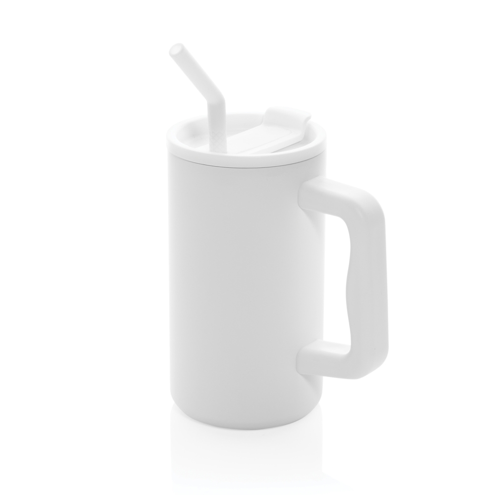 Jeho robustní rukojeť a široká základna z něj dělají ideálního společníka pro každodenní příjem tekutin v kanceláři. Mohutný, dvoustěnný, vakuově izolovaný hrnek je vybaven bezpečným víčkem, brčkem a silikonovou špičkou brčka. Šroubovací víko, které je do
