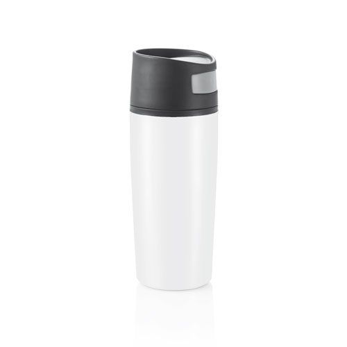Termohrnek s víčkem, kombinace nerez, plast, bílý