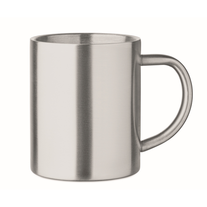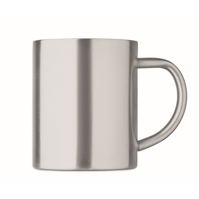 Dvoustěnný hrnek z recyklované nerezové oceli (90 % recyklované nerezové oceli a 10 % nerezové oceli). Objem: 260 ml. Rozměry: 11.1 x 9.1 cm
