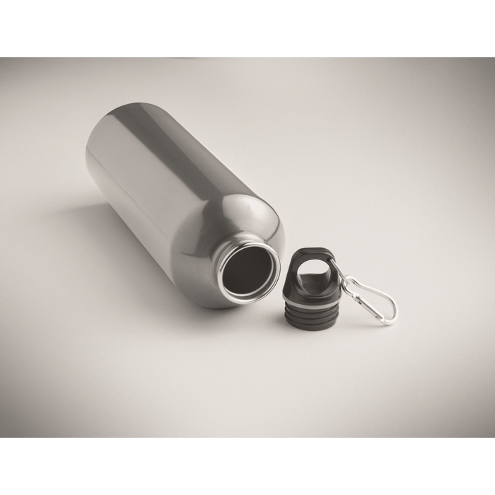 Jednostěnná láhev (90 % recyklované nerezové oceli a 10 % nerezové oceli) s PP víčkem a karabinou. Objem 1000 ml. Jelikož se jedná o jednostěnnou láhev, může docházet k přenosu tepla z nápoje. Rozměry: O8 x 26.4 cm