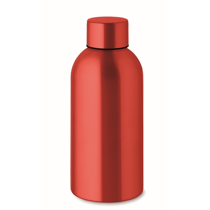 Jednostěnná láhev z recyklované nerezové oceli (90 % recyklované nerezové oceli a 10 % nerezové oceli). Neteče. Objem 500 ml. Jelikož se jedná o láhev s jednou stěnou, může dojít k přenosu tepla. Rozměry: O7 x 16.5 cm