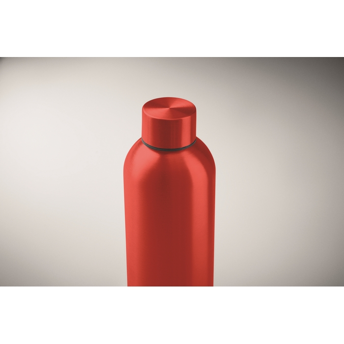 Jednostěnná láhev z recyklované nerezové oceli (90 % recyklované nerezové oceli a 10 % nerezové oceli). Neteče. Objem 750 ml. Jelikož se jedná o láhev s jednou stěnou, může dojít k přenosu tepla. Rozměry: O7 x 22 cm