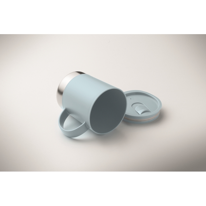 Jednostěnný hrnek z PP s nerezovým dnem (90 % recyklované nerezové oceli a 10 % nerezové oceli) a víčkem z PP. Objem: 300 ml. Rozměry: 11.2 x 10 cm