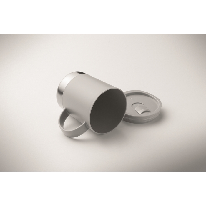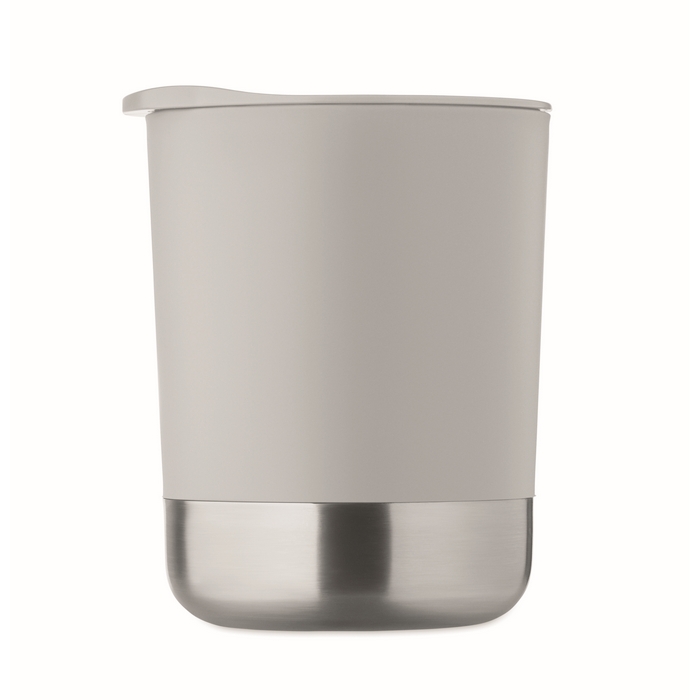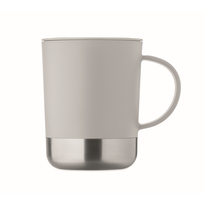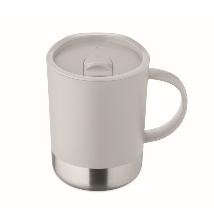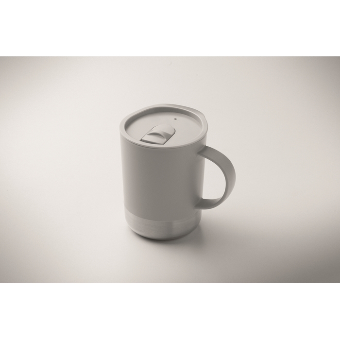 Jednostěnný hrnek z PP s nerezovým dnem (90 % recyklované nerezové oceli a 10 % nerezové oceli) a víčkem z PP. Objem: 300 ml. Rozměry: 11.2 x 10 cm