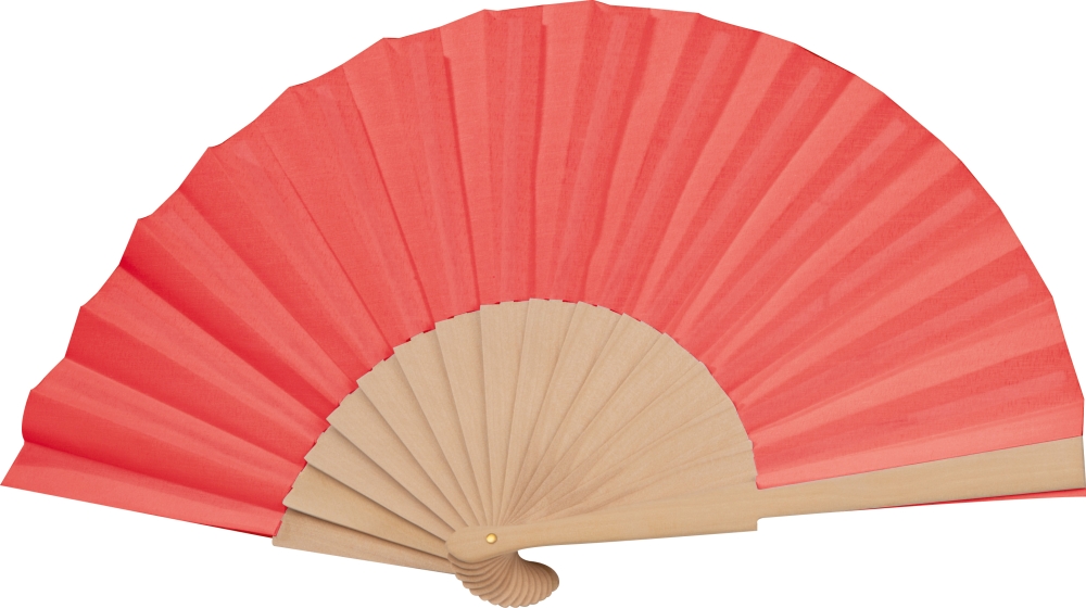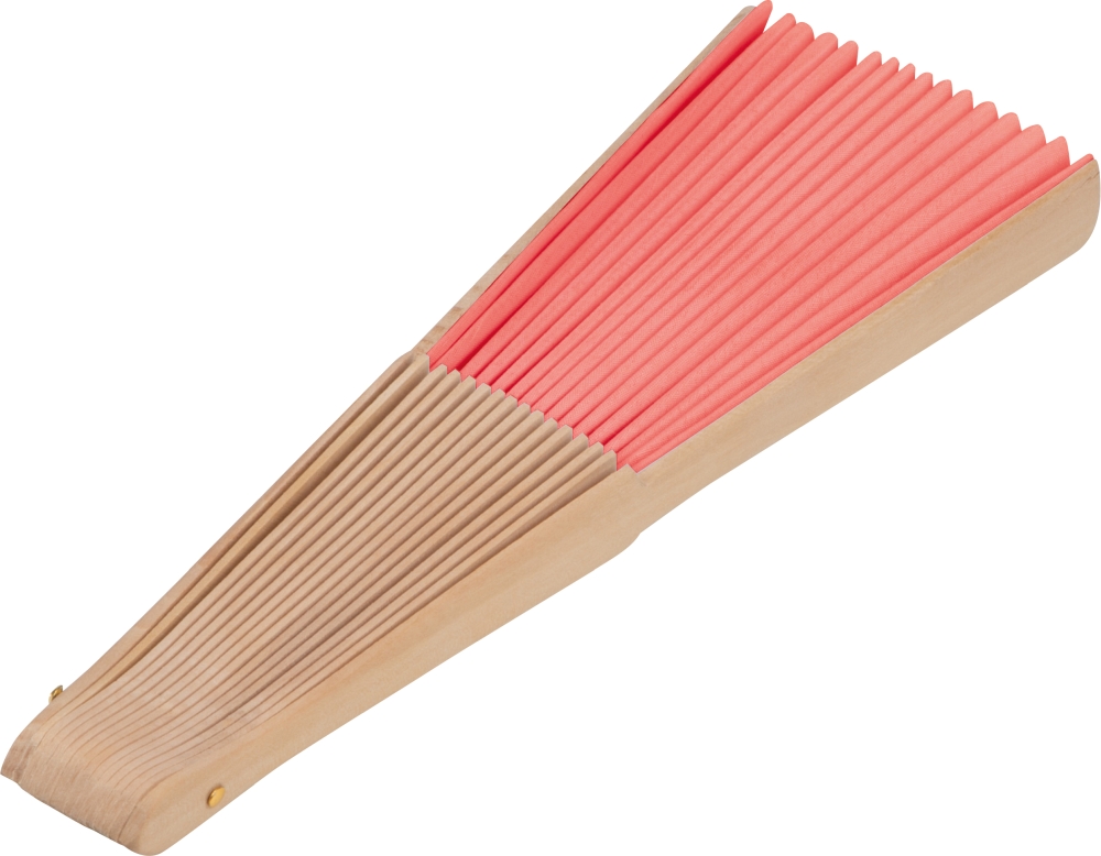 Skládací vějíř z polyesteru s dřevěnou rukojetí. Rozměry: 42 x 3 x 22,5 cm