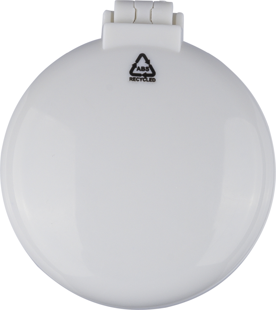 Kazeta z recyklovaného ABS plastu s integrovaným štětcem a zrcátkem. Praktický design pro použití na cestách s povrchovou úpravou s recyklovaným logem. Rozměry: 6,4 cm x 2,2 cm x 7,2 cm