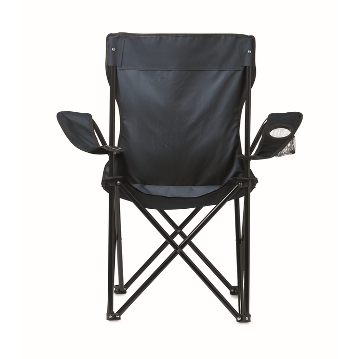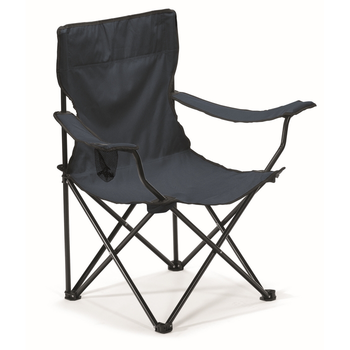 Outdoorová židle na kempink nebo na pláž. 600D polyester a kovová konstrukce. Včetně nylonového pouzdra. Maximální nosnost 100 kg. Rozměry: 80 x 48 x 86 cm