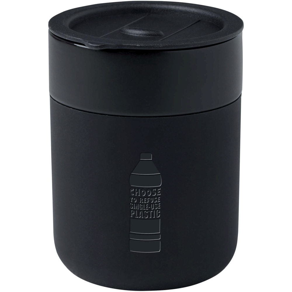 Keramický kelímek se silikonovým obalem a plastovým víčkem 330ml, černá