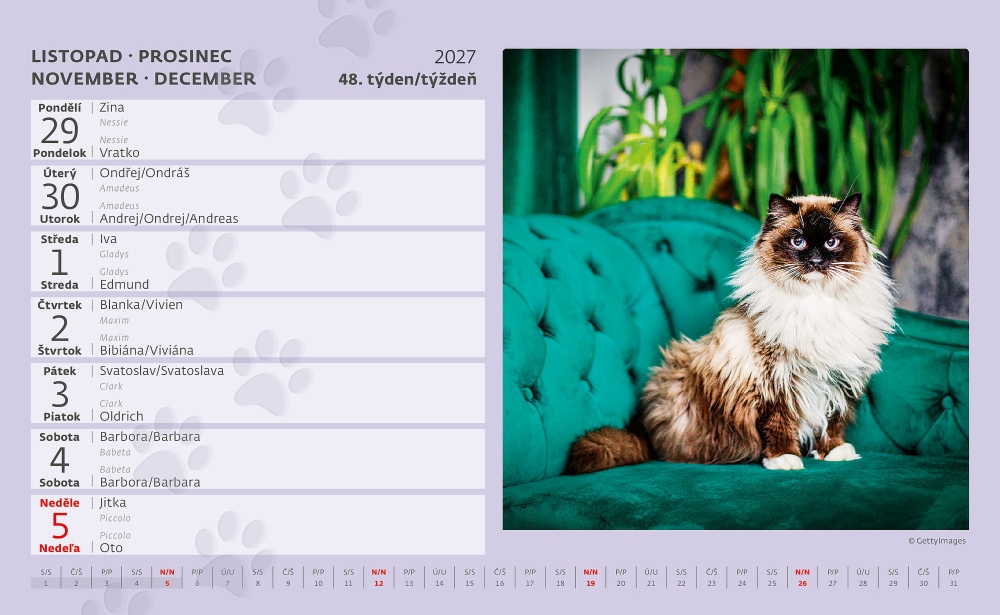Kočky 2027, stolní kalendář