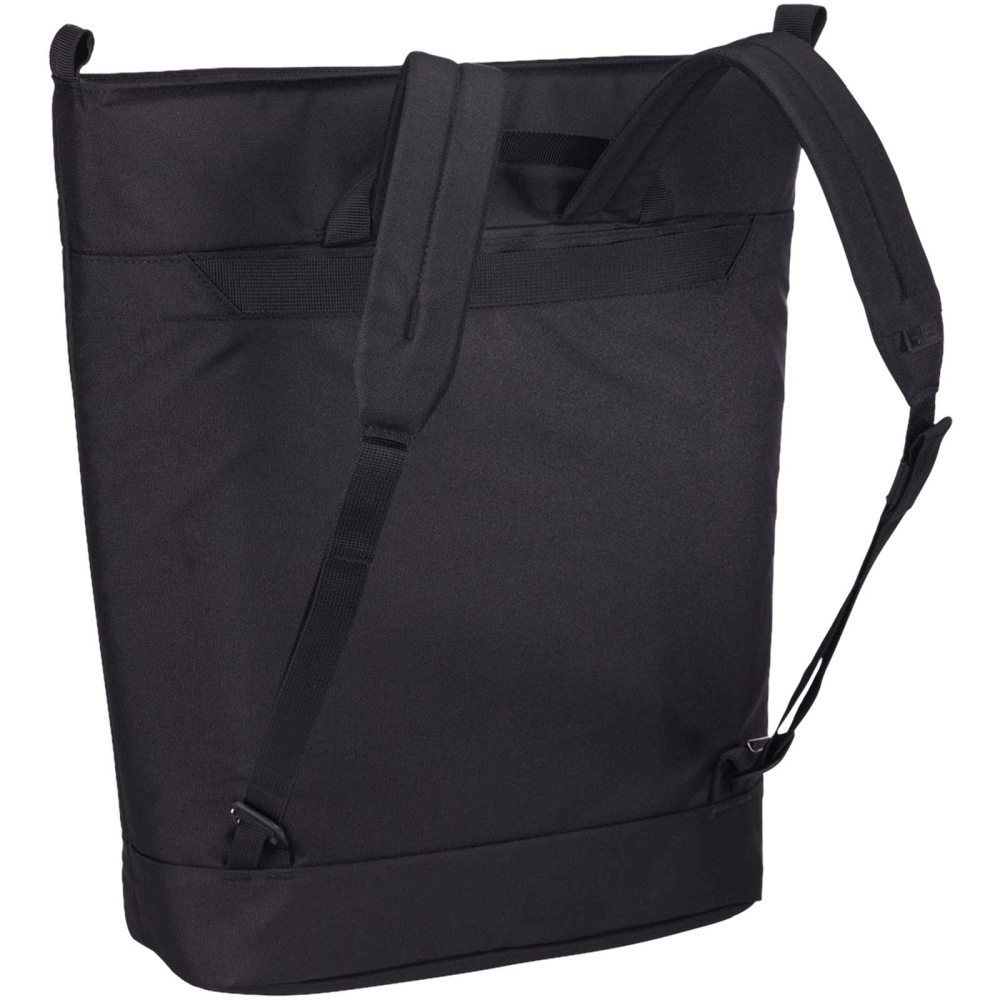 Přeměnitelná nákupní taška má vkusný a elegantní design s promyšlenými organizačními funkcemi. Je vyrobena ze 100% recyklovaného polyesteru 600D na vnější straně a podšívky z polyesteru 150D. Polstrovaná přihrádka chrání 15,6 notebook, do pouzdra na tablet se vejde 12,9 tablet. Uložíte-li polstrovaný ramenní popruh batohu, můžete jej použít jako nákupní tašku. Pokud hlavní ramenní popruh oddělíte, můžete jej použít jako batoh. Při použití v režimu nákupní tašky se popruhy batohu ukládají do malé vyhrazené kapsy na zadním panelu. Kapsa na zip na předním panelu umožňuje snadné uložení drobného příslušenství a rychlý přístup k potřebným věcem. V hlavním oddílu je vyhrazená kapsa na láhev s vodou, na zadním panelu je velká kapsa pro uložení dalších věcí. Pro cestování bez námahy je taška vybavena provlékacím popruhem pro připevnění ke kolečkovému zavazadlu. Rozměry: 36,5 x 43 x 18 cm