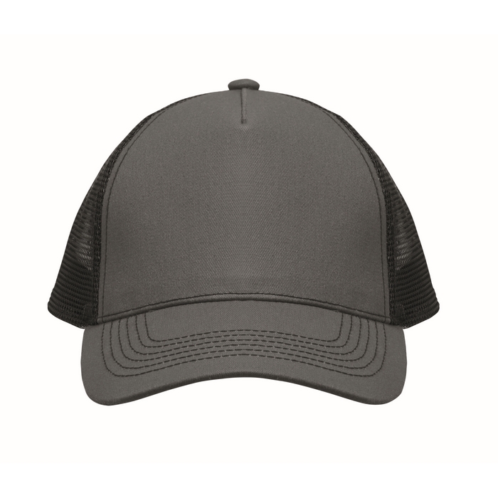 Pětipanelová kšiltovka trucker s čelem a kšiltem z bavlny 250 g/m2. Zadní síťovina z polyesteru, zapínání na suchý zip. Rozměry: 21 x 16 x 11.5 cm