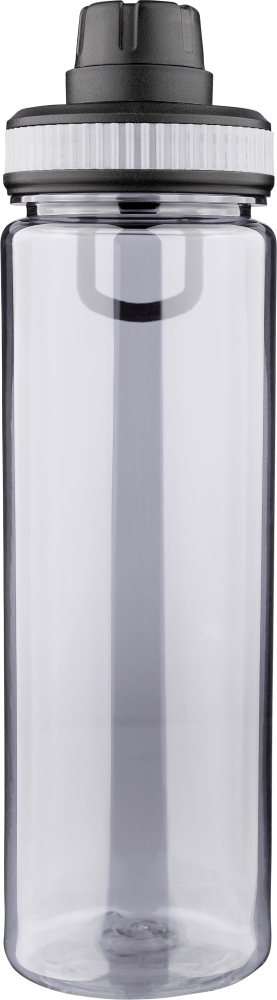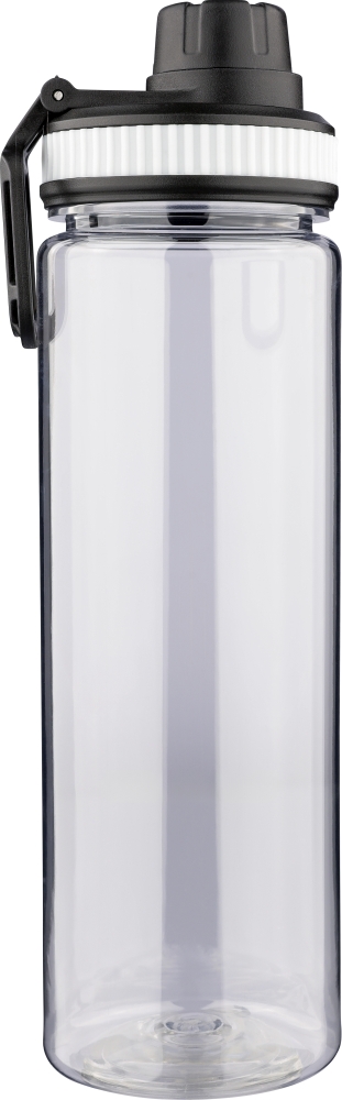 Láhev na pití z rPET (750 ml) s PP víčkem, rukojetí pro přenášení a šroubovacím uzávěrem. Víčko je opatřeno barevným silikonovým detailem, který ladí s průhledným tělem láhve. Rozměry: 7 cm x 25 cm