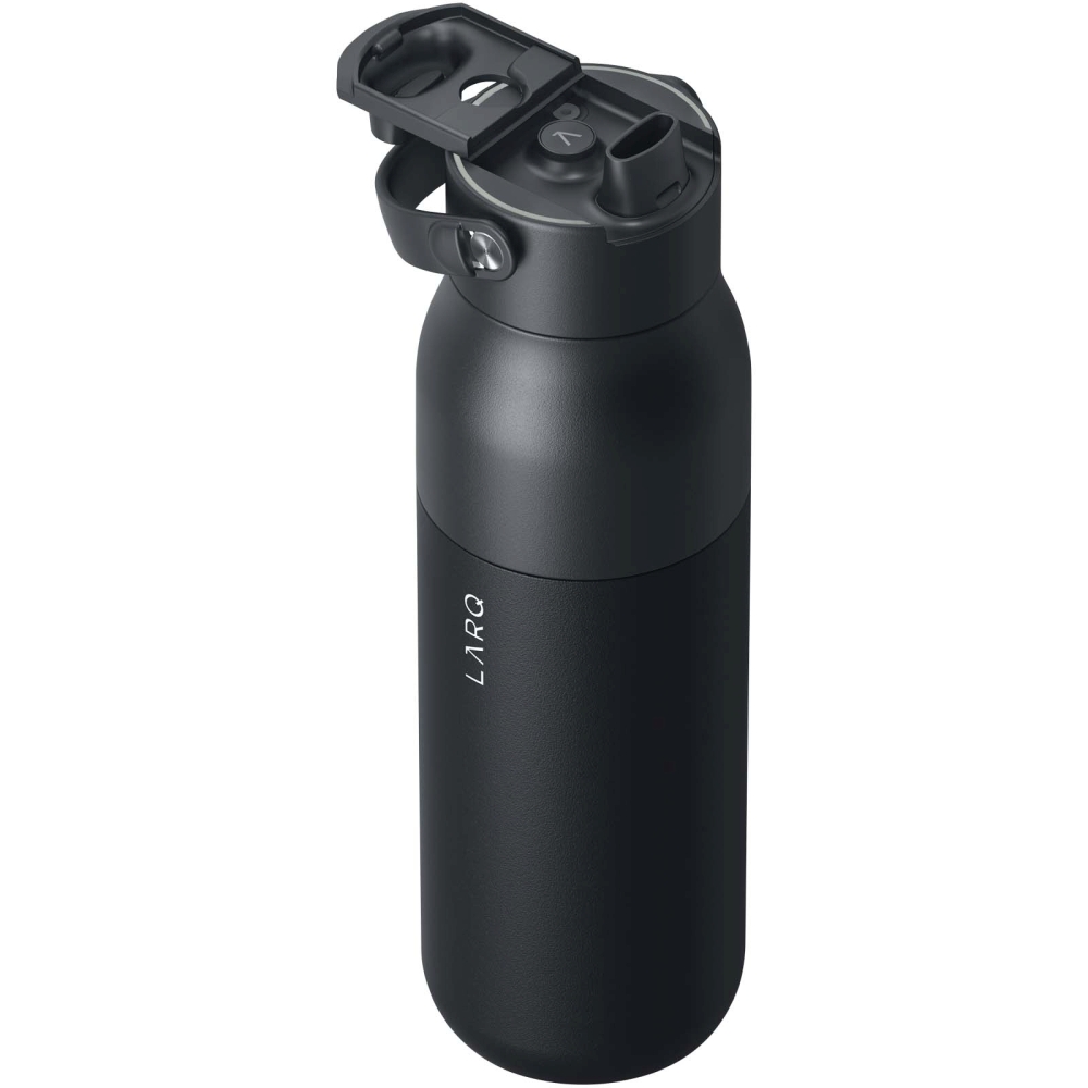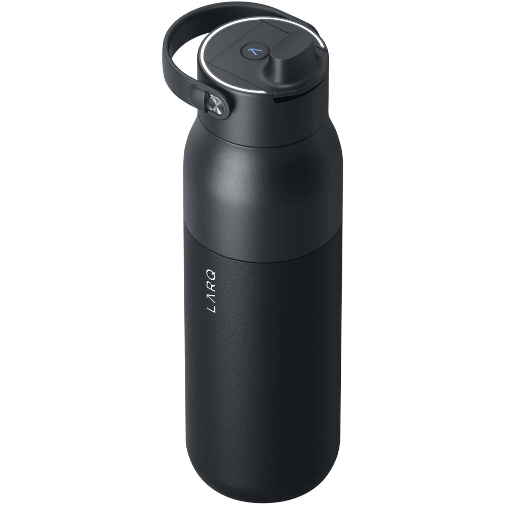 Láhev o objemu 1000 ml s integrovanou funkcí samočištění a filtrací vody a inteligentním sledováním pitného režimu. Zlepšuje kvalitu vody dvoustupňovou filtrací a procesem čištění UV-C, a postará se tak o čistší a chutnější vodu. UV-C LED dioda v uzávěru se automaticky aktivuje každé dvě hodiny, aby láhev zůstala čistá a bez zápachu, nebo můžete cyklus spustit ručně stisknutím tlačítka. Díky baterii s dlouhou výdrží funguje láhev při plném nabití přes port USB-C až 2–3 týdny. Uzávěr má integrovanou, odnímatelnou a na dotek měkkou rukojeť, která umožňuje pohodlné nošení. Chytré senzory automaticky sledují váš příjem vody a aplikace LARQ současně poskytuje přehled a informace o tom, jak si vedete. Pro optimální výkon je filtry potřeba pravidelně vyměňovat. Rozměry: 28,6 x O 8,3 cm