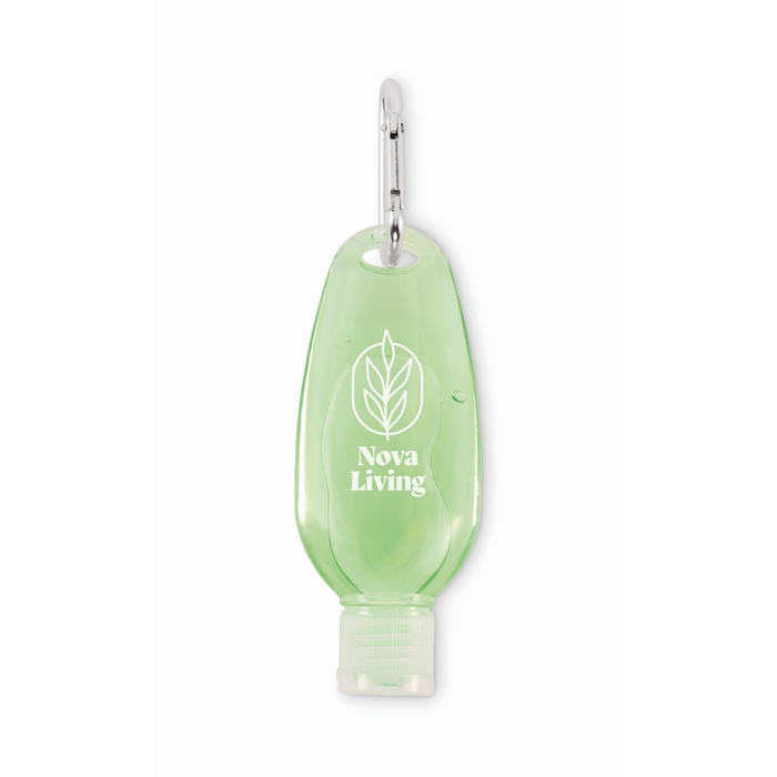 Aloe vera gel v 50ml znovu naplnitelné PET lahvičce s PP odklápěcím uzávěrem a hliníkovou karabinou. Průhledný zelený gel, ideální na cesty. Rozměry: 11.5 x 4.6 x 2.5 cm