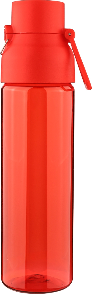 Tritanová láhev na pití s ??objemem 750 ml s barevným tělem sladěným s víčkem. Vyrobena z odolných a lehkých materiálů (PP), které odolávají vlhkosti, chemikáliím a každodennímu nošení pro dlouhou životnost. Součástí je zapínání na knoflík a horní rukojeť pro snadné přenášení. Určena pro každodenní použití v práci, škole nebo při aktivitách. Rozměry: 7 x 27,5 cm