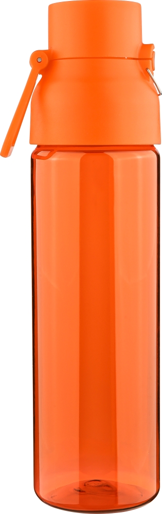Tritanová láhev na pití s ??objemem 750 ml s barevným tělem sladěným s víčkem. Vyrobena z odolných a lehkých materiálů (PP), které odolávají vlhkosti, chemikáliím a každodennímu nošení pro dlouhou životnost. Součástí je zapínání na knoflík a horní rukojeť pro snadné přenášení. Určena pro každodenní použití v práci, škole nebo při aktivitách. Rozměry: 7 x 27,5 cm